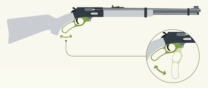 - Fusil à levier sous garde (lever action), on actionne un levier sous l’arme qui fait reculer le verrou etc … selon un cycle identique aux autres armes à répétition. Typiquement c’est la fameuse Winchester des westerns.